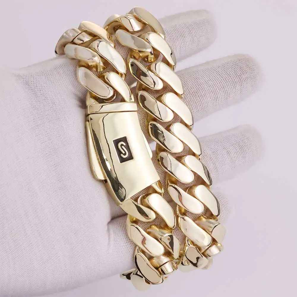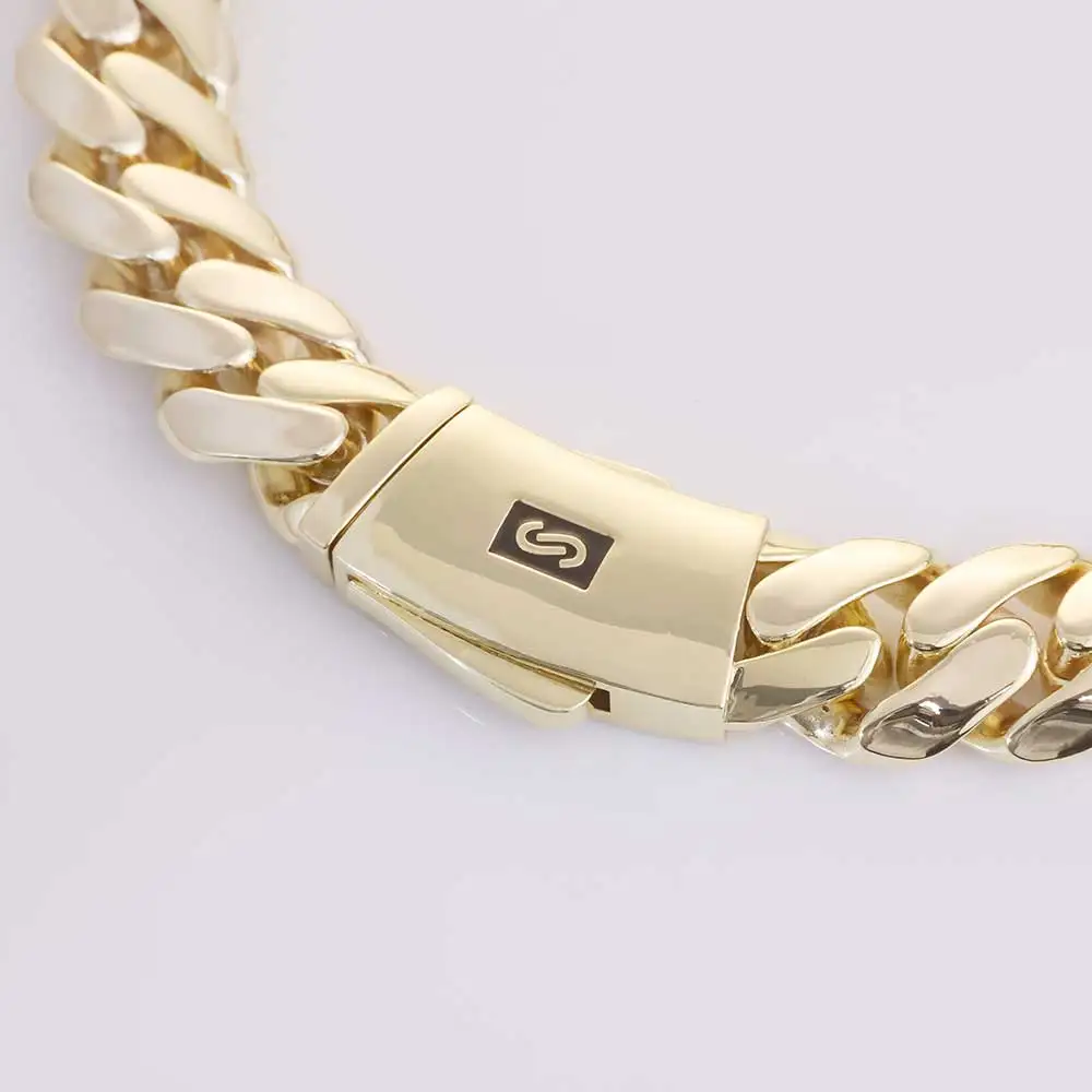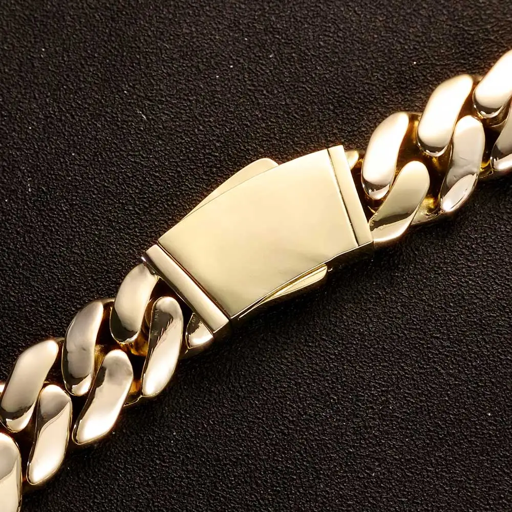 NY Fashion 14K Gold Plated 20mm Monaco Chain Smooth Miami Hip Hop Jewelry Black Oil Drop Logo Clasp Necklace for Men Gift